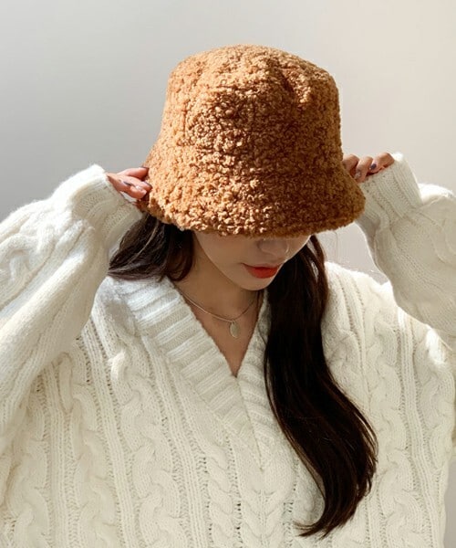やわらかいボアテクスチャーのバケットハット。 深めに被れるタイプで頭周りはサイズテープで調節可能。 ※WEARに記載してある金額と、DHOLIC通販サイトに記載してある金額にシステム都合上、稀に誤差が生じます。正しい金額はDHOLIC通販サイトに記載された金額です。