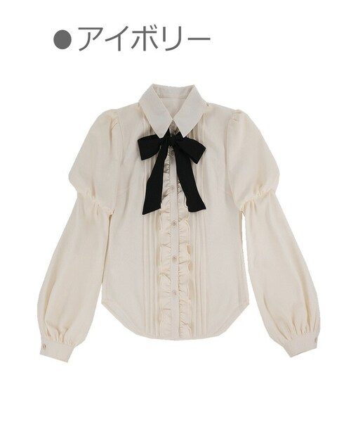 上品で華やかきちんと感もあるブラウス フロントにはギャザー寄せ&フリル ぷっくり2段スリーブがアクセントとなり ニットトップスとのコーデが今っぽい 季節問わずヘビロテできちゃう予感 黒のリボンタイはSETで付きますよ カラーは「アイボリー」1色のみの展開