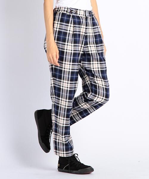 今シーズン注目のチェック柄で仕上げたパンツです。お腹周りをスッキリと見せてくれるハイエウストデザインは、テーパードデザインで気になる下半身をまるごとカバーしてくれます♪タータンチェックの定番を押さえたカラバリもポイントです。