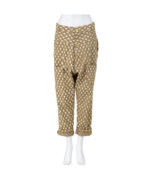 起毛感のある素材を使用したフルレングスサルエルパンツ。総柄のドット柄と後ろポケット部分の「m」・「b」のステッチがポイント。この製品は独特な風合いを出すため、製品加工を行っております。1点ごとにサイズや風合い等、特徴が異なりますのでご了承ください。Torso:H163.5 B80 W58.5 H86 着用サイズ:01サイズ