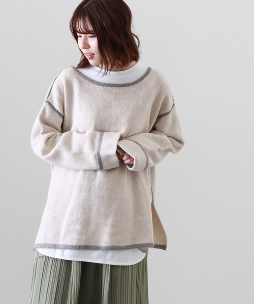 \人気の配色ニットが新色とともに再登場!/今年らしい配色パイピングと絶妙なゆるっと感がおしゃれなニット起毛感のある素材であたたかな印象に*丈が長めなので、デニムやストレートパンツに合わせても安心感があるのもうれしい♪さらにパイピングと同色のリボンベルトも付属なのでブラウジングして雰囲気も変えられる!1枚でいろんな着方ができるアイテムですニュアンス感のあるベージュ・モカに加え、やわらかな色味ながらもコーディネートのアクセントになるミントグリーンの3色展開です*※撮影場所やお使いのモニター環境により若干お色味が異なる場合がございます■商品のお気に入り登録■ラスト1点の通知やセール通知、また完売していても再入荷時に再入荷通知を受け取ることができますので、是非ご登録ください♪■ブランドのお気に入り登録■新商品や再入荷など、お得な情報を受け取ることができます!ぜひご活用ください!