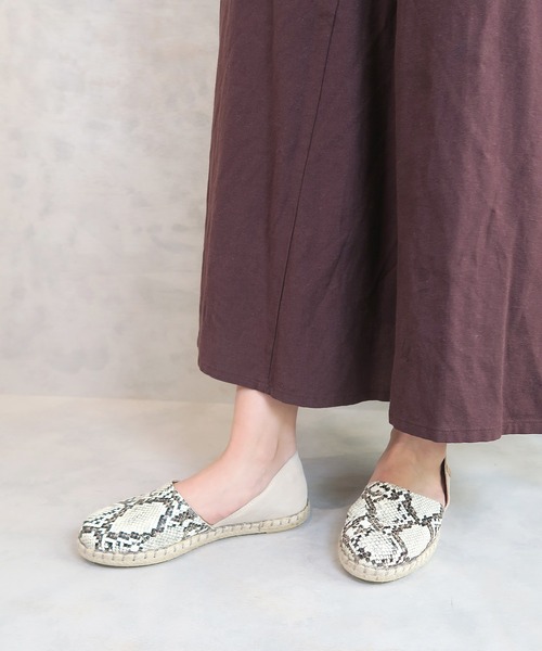 大胆なパイソン柄が足元を華やかにするエスパドリーユスリッポン。デニムなどのカジュアルなスタイリングにぴったり。底の返りも良く、ノンスリップゴム入りなので踵抜けも防止します。 ◆VERBENAS(ベルべナス)◆ ベルベナスはスペインの伝統的なサンダル「エスパドリーユ」の発想から生まれたリゾートシューズブランドです。バルカナイズ製法によるスニーカーのような軽やかな履き心地とユニセックスな南国デザインが特徴。100% スペイン バレンシア州 メイド。