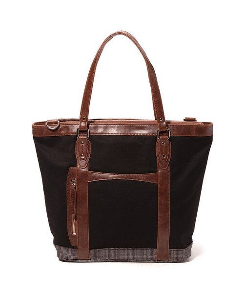 今シーズン大人気の千鳥柄を部分使いした異素材コンビのトートバック。ポケットを多めにつけているので荷物を仕分けでき、使い勝手も抜群。ショルダーバッグとしても使える便利な2WAY仕様です。
