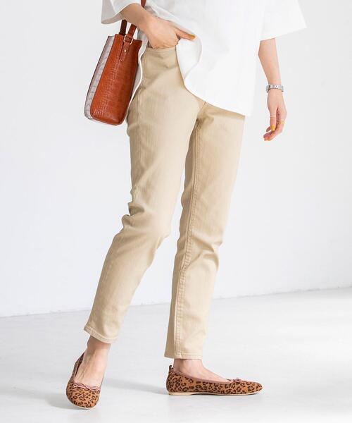 ~2021 SPRING/SUMMER COLLECTION~毎シーズン人気のイージーパンツ新作【WEB限定サイズ】XL■デザインシンプルさを大事にしている定番のスリムパンツ。ラクチンなバックゴムですが、フロントから見るとキチンと感があるデザインで提案。■素材コットンベースで適度な伸びは程よいフィット感とスムーズな足捌きを叶えます。適度な張り感があるので、季節を問わず通年で取り入れていただけます。素材の一部にペットボトルを再生した糸のREPREVEを使用しており、お財布と環境にも優しくエコを意識したアイテムです。■スタイリング合わせやすいブラック・グレーに加え、明るいホワイト・ベージュで春らしいコーディネートをお楽しみいただけます。トレンドのビッグシルエットトップスと相性がよく、ストレッチが効いていてラクチンな履き心地はおうち時間にもオススメ。幅広いコーデに対応してくれる汎用性の高さは色違いで揃えても◎。................................透け感:なし生地の厚さ:普通光沢感:なし裏地:なしサイトポケット:あり家庭洗濯:可能................................【スタッフ着用コメント】<<20代半ば・Tさん>>身長:158cm 体型:標準(下半身腰しっかりめ) 普段着用サイズ:M 試着サイズ:Mサイズ感:毎シーズン変わらずMサイズを着用しています。スッと履けてスキニーまではいかないピッタリ感です。ウエストも丁度良くヒップも綺麗に見えます。Sだと少し丈が短かいなと思います。素材感:かなりストレッチが効いていて、そこまで厚さもないのでシーズン問わず履けそうです。さらっと履ける素材が気持ちいいです。オフホワイトはほんの少し透け感がありました。オススメスタイリング:少しゆったりとしたニットやカットソーと合わせるのも良いですし、ワンピースなどの下に履いたりと万能に使えそうです。【注意点】※撮影商品はサンプルの為、実際の仕様と異なる場合がございます。※画像の商品は光の照射や角度、お使いのモニター環境により、実物と色味が異なる場合がございます。スタジオ物撮りの画像が実物の色味に一番近くなっております。※予約商品の場合、実店舗への入荷は「お届け予定」とほぼ同時期となりますが、実店舗への入荷が前後する場合もございます。品名:SC■EASY SLIM 品番:7640-607-1056