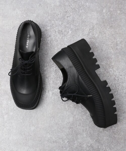 ボリュームソールが特徴のビガーシューズの登場です♪トゥ先をスクエアにすることでより厚底感見えするデザインに!ソールはEVAを使用しており、見た目よりもとても軽くて歩きやすいのもポイント★こちらは安心の抗菌消臭テープつきにもなっております。スカートにもパンツにも合わせて頂きやすいデザインで、スタイリング選ばず履いて頂けます。カラーソックス合わせも可愛いです!