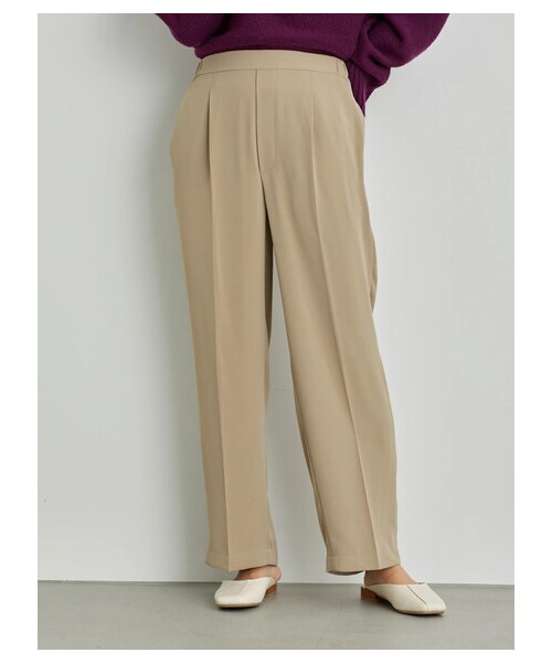 センタープレスを入れることで、マニッシュライクに仕上げたパンツ。 ストレートシルエットがレッグラインをすっきりと綺麗に見せてくれます。ウエストは後ろのみゴム仕様にすることで、楽な穿き心地ながらも、きちんと感もしっかりとキープ◎ デイリーユースからオフィススタイルにと、オンオフ問わず幅広いシーンに活躍してくれるアイテムです。