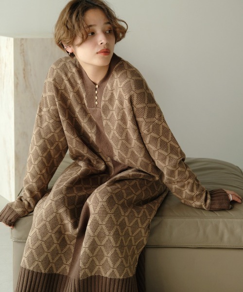 ◆Bab(バブ)◆ ジャガードニットをふんだんに使った1枚でお洒落なワンピース 程よく肉厚な生地感で綿アクリルの素材を使いチクチクせず着心地も良いです。ゆるっとした抜け感のあるサイズ感で、1枚でさらっと着るだけでお洒落に着こなせます。 ワンピースの裾には深めのスリットが入っているので、デニムなどをレイヤードしてチラ見せしてもOK! オーバーサイズなので締め付け感もなく、リラックスした状態で着用できるのも嬉しいポイント。縦に入った無地の配色も着やせ効果ありです!フロント部分は小さめのボタンを並べデザイン性を高めています。 アウターなどの下に着ても目立っておしゃれなワンピースは長く愛用して頂けること間違いなし! 生地の厚さ:★★★★☆ (ニット) 透け感:★☆☆☆☆ (全く透けない) ※色によっては透け感が気になる方もいらっしゃるかもしれませんので、その際はペチコートの着用をオススメ致します。 裏地:なし ポケット:なし ※撮影環境により、多少実際のカラーと異なる場合がございます。また、携帯やスマートフォン、パソコンなどの画面上と実物では多少色が異なって見える場合がございます。 ご了承下さいませ。 ※画像の商品はサンプルです。実際の商品と色味、仕様、加工、サイズ、素材等が若干異なる場合がございます。 ★商品のお気に入り登録 登録すると、完売しても再入荷時に通知を受け取ることができます。 ほかにもお得な特典があるかもしれません♪ ★ブランドのお気に入り登録 新商品や再入荷などの情報を受け取ることができますので、是非ご登録ください♪