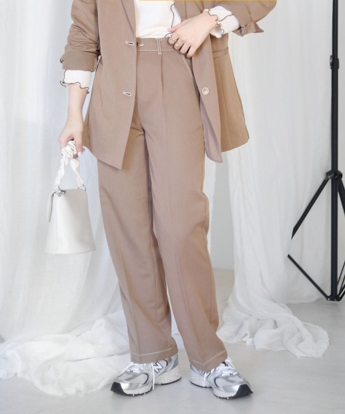 ◆Bab(バブ)◆ 配色ステッチがワンポイント。大人な印象のセンタープレススラックス 足が綺麗に見えるように計算されたパターン。自然と立体的で美しいシルエットがキマります。程よい軽やかな落ち感が女性らしい柔らかさを演出し、深めの股上が気になる腰回りや、ヒップラインをカバーしてくれます。またウエストにゴムを使用しない事で、トップスをインしてもスマートに決まりオンスタイルにもおすすめです。 お揃いの素材でジャケット展開もあり!(品番:803005) ジャケットと合わせてセットアップ風に着ても、今年らしくこなれ感のある雰囲気に。あえてセットアップスタイルにカジュアルなスニーカー合わせも相性◎ ※同素材でジャケットも展開(品番:803005) ★A(チェック柄)とグレージュのみ、ジャケットとセットアップで着用可能です。 ★ベージュはジャケットで展開しているベージュとお色味が違うのでセットアップで着用すると色差が出ます。ご注意下さい。 生地の厚さ:★★★☆☆ (布帛) 透け感:★☆☆☆☆ (全く透けない) 裏地:なし ポケット:あり ※撮影環境により、多少実際のカラーと異なる場合がございます。また、携帯やスマートフォン、パソコンなどの画面上と実物では多少色が異なって見える場合がございます。 ご了承下さいませ。 ※画像の商品はサンプルです。実際の商品と色味、仕様、加工、サイズ、素材等が若干異なる場合がございます。 ★商品のお気に入り登録 登録すると、完売しても再入荷時に通知を受け取ることができます。 ほかにもお得な特典があるかもしれません♪ ★ブランドのお気に入り登録 新商品や再入荷などの情報を受け取ることができますので、是非ご登録ください♪ #サイズ展開アリ