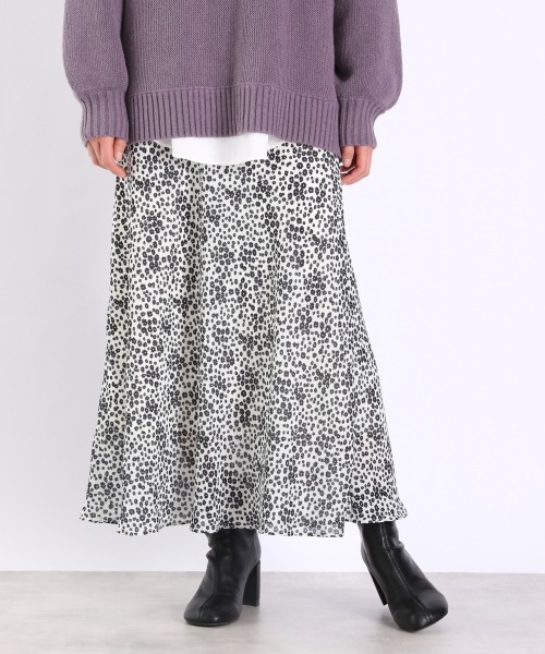 定番アイテム、花柄のフレアスカート。広がリ過ぎず、裾にだけフレア感が出る上品なシルエットになっています。程よい落ち感のある素材でニュアンスのある着こなしに。落ち着いた花柄なので季節を問わずに使いやすいアイテムです。BIGシルエットのスウェットやニットと合わせて着こなすのがお勧めです。温かくなってきたら、ロンTにニットカーディガンも可愛いです。