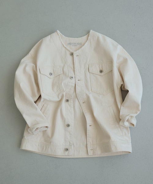 2021 Spring & Summer AMERICAN HOLIC DENIM COLLECTION カットオフしたフリンジのようなノーカラーデザインがポイントになったCPOブルゾン。 ビックシルエットでゆったりと着ることができ、さりげない抜け感を演出してくれます。 環境に配慮した素材、加工技術を採用したエシカルな商品です。 ※画像の商品はサンプルです。実際の商品と仕様、加工、サイズが若干異なる場合がございます。 ● AMERICAN HOLIC ● (アメリカンホリック) 大人の女性の毎日を軽やかで豊かにするブランド。 カジュアルなのにオシャレ、コーディネートも楽。ONにもOFFにも等身大で楽しむオトナの日常着をテーマに、スタイリッシュかつ自然体を楽しめるカジュアルスタイルを提案します。 ▼ 商品のお気に入り登録がおすすめです ▼ 商品ページ内のハートマークをクリック。完売時の再入荷や、最後の1点の通知、コーディネート画像がアップされたとき、お得なお値下げの際の通知を受ける事ができます。 【お知らせ】ページでも通知が確認できます。