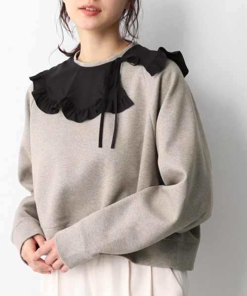 【デザイン特徴】 今シーズンから引き続きトレンドのフリルエリは、スウェットにアウターにとさらに自由にスタイリングに入れられる付けエリになって登場。 甘めデザインなので、少し横にずらして、アシメデザイン風に使うのもおすすめです。 【素材特徴】 アパートバイローリーズで人気のグリンフィル素材を使用。 洗濯後のシワや毛玉を軽減でき、しなやかな落ち感と毛羽立ちにくいキレイな表面感が特徴の素材です。 【洗濯可否】 手洗いでお手入れしていただけます。