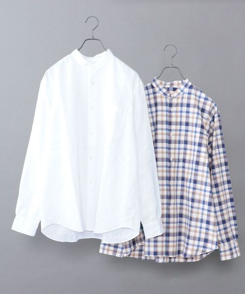 <WEB限定販売の2パックバンドカラーシャツ> 【素材特性】 リネン素材とコットン素材の2枚を1組にした大変お得なパックシャツ。 夏に適した肌離れの良いリネンシャツと通年使える万能なコットンシャツとなっています! 【デザイン】 無地×ストライプ、無地×チェック、無地×無地など豊富なバリエーションにてセット販売。 春夏らしいカラー展開で、どれも爽やかな印象で着用していただけるアイテムとなっています。 サイズ感もトレンドを意識し、リラックスフィットでの展開となっています。 程よくゆとりがあるので、着心地良く大変オススメです! 【スタイリング】 Tシャツ合わせはもちろん、バンドカラーの特徴を活かし、ジャケットなどのインナーとしても活躍します! シーンや気温に合わせて長くお使いいただける大変オススメのバンドカラーシャツとなっています! ---------------------------- 裏地:無し 光沢感:無し 生地の厚み:普通 伸縮性:無し 透け感:無し(ホワイト以外) 水洗い:OK ---------------------------- カラー展開詳細 ホワイト1:ホワイト(リネン)×ストライプ(コットン) ホワイト2:ホワイト(リネン)×ブルー(コットン) ホワイト3:ホワイト(リネン)×ネイビー(コットン) ホワイト4:ホワイト(リネン)×チェック(コットン) ベージュ:ベージュ(リネン)×ダークブルー(コットン) カーキ:カーキ(リネン)×チェック(コットン) ライトグリーン:ライトグリーン(リネン)×ストライプ(コットン) ライトブルー:ライトブルー(リネン)×ホワイト(コットン) model::H175 B83 W66 H87 着用サイズ: MEDIUM ※カラー名「ベージュ」:ベージュ×ダークブルー(コットン)のダークブルーのみステッチが詳細画像のように同色ステッチから白ステッチへ変更となります。 ※画像の商品はサンプルです。 実際の商品と仕様、加工、サイズが若干異なる場合がございます。 予めご了承下さい。 ※袖の仕様は詳細アップ画像のような仕様となります。 ※カラー名は片方のシャツに合わせて振り分けております。 ご注文の際は画像を参考にお間違いの無いようご注意ください。 ※タグ・バーコードのついたシールには、 サイトのご案内と異なるカラー名が記載されていることもございます。ご了承ください。 ※シャツの組み合わせは既存の組み合わせのみでの販売となります。 ※生産状況により店舗にて販売する場合もございます。