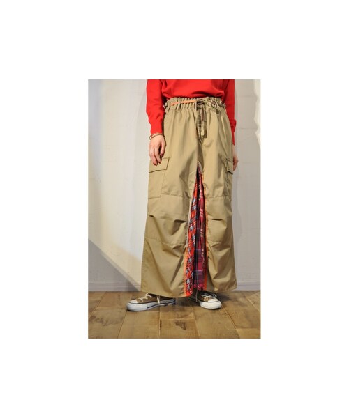 アメリカ軍のBDUパンツをリメイクしたスカート。 フロントとバックのスリットにチェックのネル生地を組み合わせたデザイン。 パンツの立体感を活かしたシルエットが特徴的。 配色のウェストリボンもポイント。 ウェストの内側にゴムが入っています。 *チェックのネル生地部分はアソートの為、固体差があります。 色違いにブラックあり。 ●商品一覧トップページはこちら↓ http://urx3.nu/LHHy