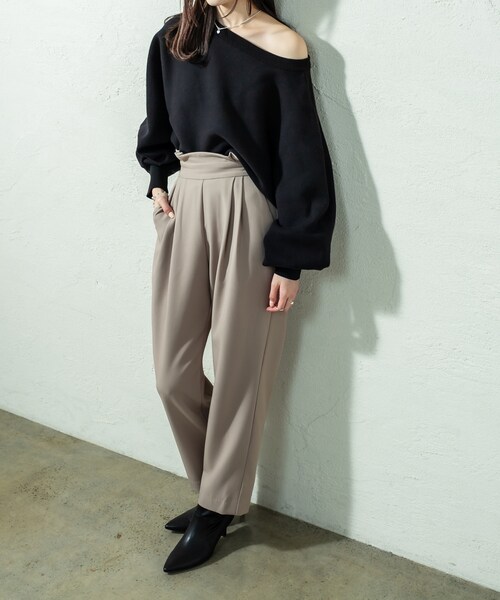 ウエストのフリルがポイントの美脚見えするデザインパンツ!!商品ポイント・ベルト上についたフリルデザインが目を引くパンツです。・インスタイルやアウトスタイルでも綺麗に着て頂ける緩めなテーパードライン。・細身で少し足もとが見える丈感でスタイリングを新鮮な印象に見せてくれます。・1枚で主役見えするデザイン◎シーズンレスで愛用して頂けるのも嬉しいポイント。スタイリングポイント・ウエストがフリルのデザインなのでインスタイルが◎・ショート丈のトップスを合わせるのもオススメ。------------------------------------------------------裏地:なし伸縮性:あり光沢感:なし生地の厚さ:ふつう------------------------------------------------------------------------------------------------------------商品のお気に入り登録➡ お気に入りアイテムの値下げ・再入荷・在庫1点などの通知を受け取ることができます。ブランドのお気に入り登録➡ 新商品や再入荷、セール、クーポン配布などお得な情報を受け取ることができます。※サイト上のカラー名と、お届け商品に記載されているカラー名が異なる場合がございます。※商品の色味は、撮影場所や光のあたり具合などにより色味が違って見える場合が御座います 。また、お客様のお使いのPCのモニター環境などにより色味が違って見える場合が御座います。予めご了承の上ご注文下さい。※ご注文いただいた予約商品のお届け時期の確認は、注文履歴ページより行えます。------------------------------------------------------ '