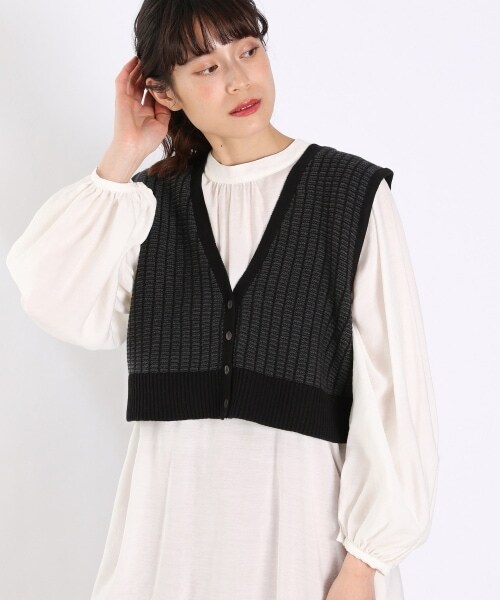 前後2WAYで使えるニットビスチェ。ショート丈なのでいろいろなトップスと合わせやすく、簡単にレイヤードスタイルが完成します。ロンTやシャツ、ブラウス、ワンピースなど様々なアイテムと重ね着しやすいデザインになっています。
