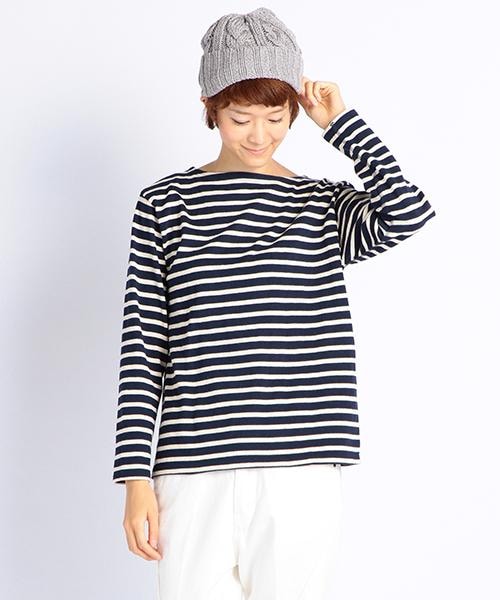 毎日のカジュアルコーデにマストな、ボーダー柄の長袖Tシャツです。ゆったりとしたシルエットは、横にワイドなボートネックで抜け感をプラスしました♪1枚ではもちろん、シャツやタートルネックをINした重ね着も今年らしくてオススメです。