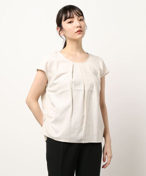 前タックがポイントの一枚でもサマになるフレンチスリーブブラウスです。腰回りにもタックを施し、立体的なフォルムが特徴です。【EDDY GRACE】オトナの女性に向けて綺麗な色にこだわった、きちんと感のあるデイリーウェア "MORE BEAUTIFUL THAN NOW, TO MORE HEALTHY SOCIETY" ~もっと綺麗に!もっと元気に!~
