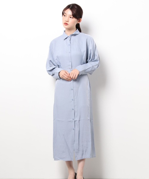 大人の女性のための理想的シャツワンピース♪ やわらかな素材が作りだすリラクシーな雰囲気が魅力的。 肌に馴染むようなしっとりとした着心地にもこだわりました。 カジュアルだけど愛らしいドルマンスリーブシャツワンピ ウエストから入るタックによって、動きに華やかさを演出。 着回し対応抜群なロングシャツワンピース 柔らかい質感と風合いでかっちりすぎないディテールになっております。 パンツをレイヤードしたり、厚手のニットと重ね着したりと着回し効果抜群◎