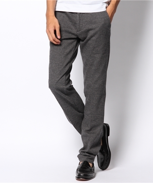 ジャケパンスタイルに欠かせない細身のスラックス。 ストレッチ性のジャージー素材を使用しました。 表地はすごく伸縮性があり、また裏地もストレッチ素材なのではき心地が良く、着用時にツッパリ感がありません。 シルエットは太腿から裾にかけて緩やかに細くなるテーパードタイプ。 オンオフ兼用でご利用いただけます。