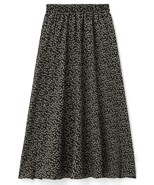 フラワープリントで、モダンキュートな仕上がりに。 フレアシルエットだから、女性らしい美脚へ導いてくれる。 落ち着いたロング丈が、大人っぽく着こなせるポイント。 ★裁断の関係で、柄の出方が写真と多少異なる場合があります。 ★ウエストゴム入りです。 ★裏地付きです。