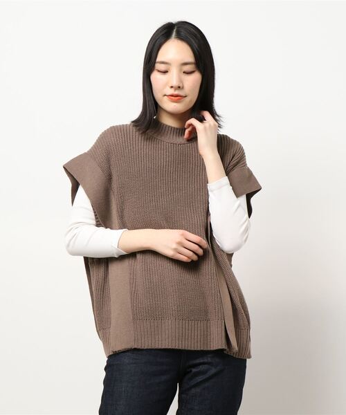 トレンドアイテムのRight-onオリジナルのニットベスト。少しハイネックになっていて、首回りがすっきりと見えるのが特徴的。サイドのデザインもポイントになっており、レイヤード風に見えておしゃれに着こなせます。