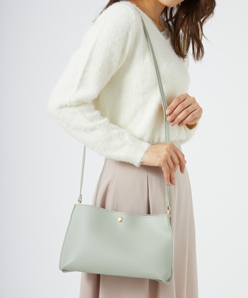エコレザーでリッチ感のあるショルダーバッグ。 柔らかく軽い材質と長財布もすっぽりと入る大きさで使い勝手が良いアイテム。 内側は3つのポケットで仕切りになり、小ぶりながらもたっぷり容量なのがポイント。 ショルダーの長さの調節も可能です。 カラー豊富な5色展開で、スタイルに取り入れやすいバッグです。