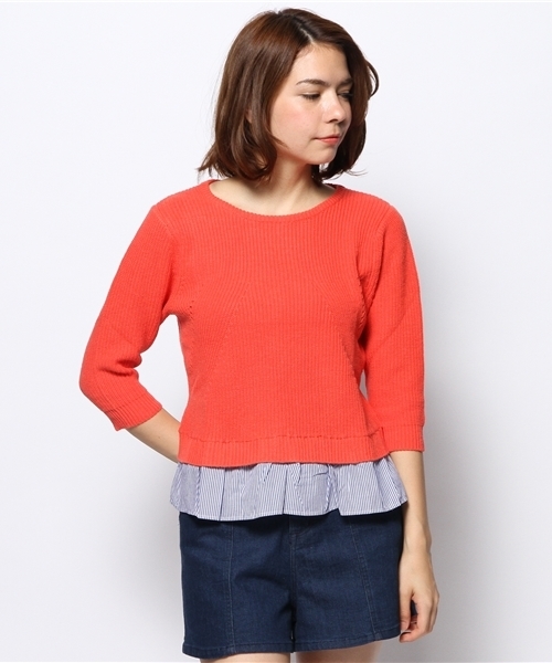 【Ciaopanic】裾ストライプ5分袖プルオーバー シンプルなデザインが特徴的で可愛い5分袖プルオーバーニット。 ボトムススタイルでもスカートスタイルでも合うアイテムです☆★ model H163 B80 W59 H88 着用サイズ:FREE