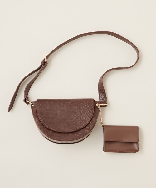 【2021SS natural couture】エコバッグ付きで収納力◎ハーフムーンバッグハーフムーン型がコロンとしてて愛らしいショルダーバッグ。コンパクトなサイズ感ながらマチがあるので、収納力も◎ミニサイズのポーチはエコバッグや小物を入れるのにピッタリ。後ろにはカードホルダーがあるので、定期入れにもご使用いただけます。カラー展開は春らしいミントと、お洒落に決まるクロコ柄でご用意。春のおでかけスタイルに加えたいアイテムです。エコバッグ入れ:高さ9cm 幅12.5cm マチ3.5cm▼商品のお気に入り登録▼♡をクリック!でお得な情報がいっぱい!お気に入りアイテムの値下げ・再入荷・在庫1点などの通知など、耳寄りなお買い得情報をいち早く受ける事ができます。▼ブランドのお気に入り登録▼ブランド【natural couture(ナチュラルクチュール)】のお気に入り登録で新商品や再入荷、セール、クーポン配布など、お得な情報を受け取ることができます!
