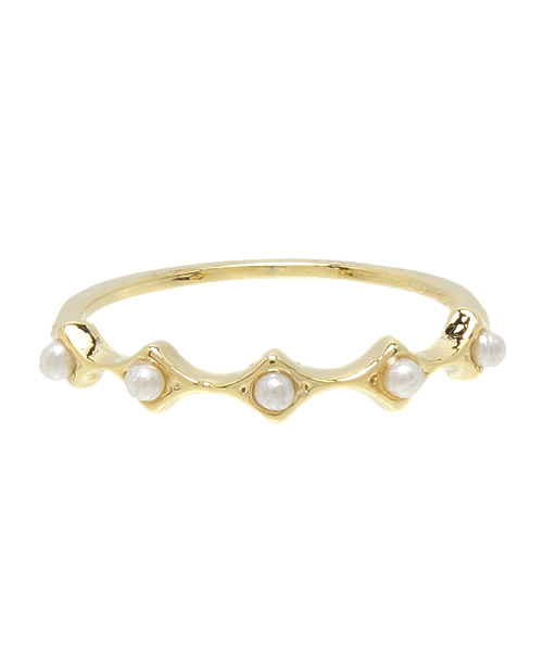 who’s who Chico(フーズフーチコ) 5連のパールが印象的なデザインリングです。肌に馴染みやすいゴールドに、小ぶりなパールが可愛らしいアイテムです。存在感があり、コーデの仕上げにプラスして頂きやすいリングです♪