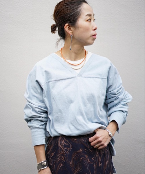 Uncut Bound(アンカットバウンド) 2WAY 配色ドルマンカットソーステッチの配色がアクセントのカットソー。前後ろ2WAYで着用でき、VネックとUネックどちらとも楽しめます。さらに程よい首元の開きなので、抜いたようなこなれ感を演出。開きが気になる方は中にTシャツを合わせても◎- スタイリング -前のみインして着用するとすっきりした印象に。インしなくても程よいサイズ感なのでもたつきません。パンツ、スカートどちらとも合わせやすく、デニムとの相性も抜群です。【Uncut Bound/アンカットバウンド】「Uncut Bound」とは、無国籍""ボーダレス""境界のない"という意味で、 スタイルの枠にとらわれず、自由に好きなファッションを組み合わせようという ポリシーを表しています。それは、アメリカンカジュアル、ヨーロピアンカジュアルという分け方をしないで、古着やリメイクテイストをベースに、国内はもちろんのことアメリカ、イタリア、オランダ、イギリス、オーストラリアなど各国から、味のあるカジュアルウェアをセレクトしていること、そして、性別や年齢という概念をもたず、若い人も年配の方も、気軽に入りやすくて居心地のよい空間をつくることです。スローライフのように、ゆっくりとゆったりと、高品質のアイテムを楽しんでください。今までのアメリカンカジュアルのイメージとはひと味違う新しい風を吹かせる、そんなSHOPです。" ■お使いのパソコンのモニターによって、実物商品とカラーが異なって 見える場合があります。誠に申し訳ございませんが、ご理解下さいます様お願いいたします。■当ショップの在庫数は 直営店舗の商品も含まれています。在庫数が日々変動する為、ご注文頂いた時点で在庫が完売になっている場合がございます。 ■サイズ表は、製品の生地や織りなどの特性により、多少の誤差はございます。予めご了承ください。