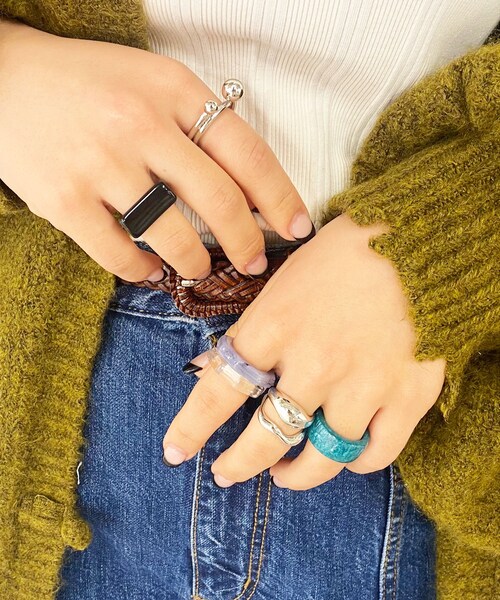 シンプルデザインのアクリルリングどんなスタイリングにも合わせやすいシンプルなアクリルリング。単独使いはもちろん、重ね付けやその日の気分に合わせて組みあわせを楽しんでいただけます。□掲載画像の商品の色味は屋外や屋内の光の照射・角度により実物の色味が異なる場合がございます。予めご了承ください。□13号サイズ(指周り約53.4mm)で製作していますが、商品により多少の個体差がございます。予めご了承ください。□【調整可能】の表記がある商品は指に合わせて多少の調整が可能です。強い力で開閉すると破損に繋がりますので、調整の際はご注意ください。□着用・お取り扱いの際、商品についている品質表示とアテンションタグを必ずご確認ください。商品のお取り扱い・ご注意等に関してはこちら