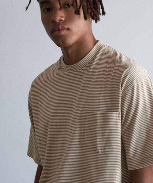 先染めした3配色の細かなボーダー柄が特徴的なベーシックなポケット付きTシャツ。 超長綿のオーガニック原料を使用し、特殊な紡績方法で繊維長の長いものだけを選定して作った特別なオーガニックコットンです。 シルエットはドロップショルダーで身幅、袖幅共にゆとりを持たせたオーバーサイズ仕様です。 一枚で着用しても存在感を発揮してくれる一着です。 サイズ表記 M=3 サイズ表記 L=4 【unfil / アンフィル】 2017年秋冬からスタートした日本のブランド。 考え抜かれた良い素材、シルエット、ディテールを以って、時間をかけて作られた洋服。 気軽さと着心地の良さを大切に、シンプルかつ特別な洋服を展開している。 ※お取扱い上のご注意 アテンションタグを必ずご確認の上、着用又はお取り扱い下さい.