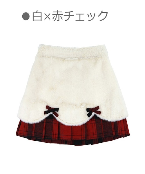 ふわもこファー素材をベースとしたスカート シルエットでファーの膨張感をカバー 暖かさとかわいさを両立させたデザイン ウェーブ状カットの裾の下からさらに 異素材プリーツスカートがチラリ ハイウェスト仕様とミニ丈ビスチェの最強コンビで スタイルアップコーデの仕上がりです★ 「白×赤チェック」と「ピンク」の2色展開