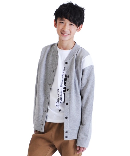 綿100%のオーソドックスな裏毛を使用したカットスタジャンです。 抗菌・防臭加工により繊維上にある細菌の増殖を抑えることで、においの発生を軽減します。 カジュアル系ファッションの定番アウターであるスタジャンは、スタンダード+シンプルデザインで着まわし抜群◎ スナップボタンもおしゃれポイントで、着脱もらくらくスムーズに。 主張し過ぎないベーシックなカラーと落ち着きのあるデザインで、キッズもクールに着こなせます♪ 【モデル】 身長159cm、体重40kg、着用サイズ:160cm ■GLAZOSのお洋服は格好良いシルエットを目指し、一般的なお洋服より少し細身の作りにしております。実寸サイズをご確認の上、サイズをお選び下さいませ。