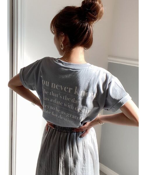 \オシャレなバックプリントがシンプルすぎずアクセントに/カラーごとに絶妙な色使いでヌーディー感のある印象に。シンプルすぎずカジュアルにもきれいめにも対応してくれる万能Tシャツです♪プリントの和訳までも可愛いおススメITEMです。その日、ひょっとしたら運命の人と出会えるかもしれないじゃないその運命の為にも、できるだけ可愛くあるべきだわ・生地:薄手