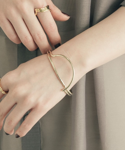 【アートのようなカーブを描く】華奢なメタルラインにカーブラインを合わせたバングル。アートのような曲線が美しく、手元にポイントをプラス。春夏ですっきりとしてくる腕回りに映えるバングルは持っていて間違いなし◎※メッキ製品は変色してしまいがちです。こまめなお手入れで防止してください。アレルギー体質の方や体調が低下している方など、かぶれることがありますので十分にご注意ください。※アクセサリーは壊れやすいものです。取扱いにご注意ください。※その他お取り扱いに関しましては、商品に付属のアテンションタグをご覧ください。※商品画像は、光の当たり具合やパソコンなどの閲覧環境により、実際の色味と異なって見える場合がございます。予めご了承ください。※商品の色味の目安は、商品単体の画像をご参照ください。