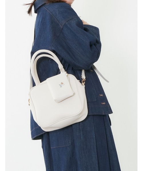 スクエア型のシンプルなフォルムのショルダーバッグ。スマホをぴったりしまえるアウトポケットと、背胴には必要最低限のカードを入れられるカードポケットが付いています。リップや小銭など、出し入れの多い小物をしまえる便利なチャームポーチ付き。荷物を少なくしたいときにはお財布代わりにもなります◎コンパクトなサイズ感でアクセサリー間隔でスタイリングに合わせて使えます。縦幅21cm 横幅19cm 持ち手立ち上がり14cm マチ7cm ショルダー長さ110cm外ポケット1 内ポケット1チャームポーチ:縦幅12cm 横幅9.5cm マチ3.5cm 外ポケット1POU DOU DOU プードゥドゥひと手間加えた存在感のある「日常着」いつまでもときめきとかわいいを忘れない方への愛着を持てるワードローブ