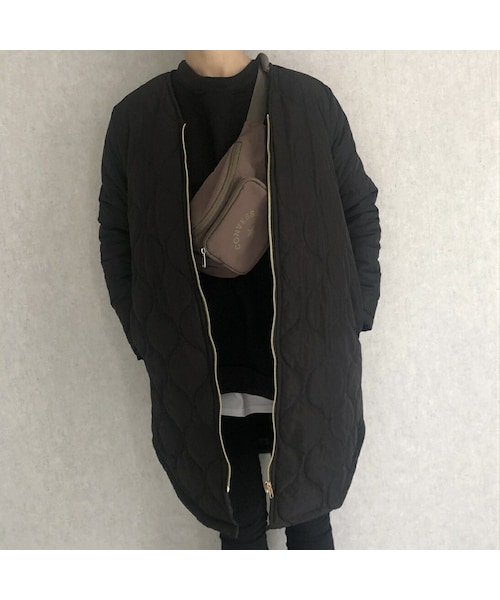 軽くてデイリー使いにぴったり!すっきりとしたシルエットのノーカラーデザインキルティングコートです。 ゴールドジップで高級感があり、裾のラウンドデザインも女性らしい印象を添えてキレイめにも着用いただけるアイテム! ハイウエストにブラウジングするので自然とスタイルアップ効果も期待できます♪ きれいめにもカジュアルにもお使いいただける大人アウターです★ ※モデル身長:161㎝ ◾️カラー カーキ・ブラック ◾️サイズ(フリーサイズ) 着丈95cm 肩幅41-42cm 袖丈41cm 多少の誤差は予めご了承ください。 ◾️素材 【表地】ポリエステル100% 【裏地】ポリエステル100% ※別布(パイピング、前立て部分)ポリエステル85% ナイロン13% ポリウレタン2% ※こちらの商品は海外縫製の為、多少歪み・縫製の甘さ(糸の出)などがある場合がございます。予めご了承下さい。 ※光の加減等により、実際の色目とは多少異なる場合がございます。予めご了承ください。