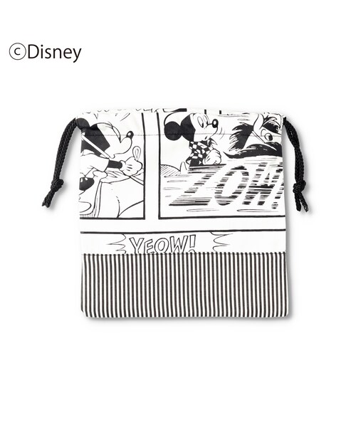 大胆にプリントしたコミック柄×細ストライプの切替がポイントのコップ袋です。モノクロにまとめることでオシャレな雰囲気に仕上げています。内側にお名前ネームがついているのがポイント!!お揃い柄のレッスンバッグ、シューズバッグ、体操服入れがあります。