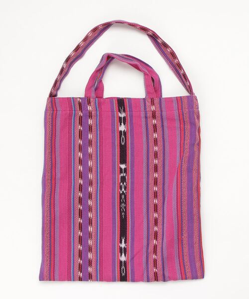 グアテマラに伝わる伝統的なイカット生地を使用したトートバッグです。共布のハンドルが2つ付いており、ハンドバッグとしてもトートバッグとしても使えます。 裏地付きで頑丈なバッグになっています。 雰囲気抜群のバッグに仕上がっています。