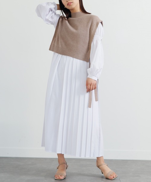 【トレンドのニットベストがセットになった着回し力の高いワンピースをご用意致しました】ベストは、ショート丈にすることで全体のバランスが良く見えスタイルアップ効果も抜群です。シャツワンピース部分は袖にデザインを施し、女性らしいフレアスリーブに。スカート部分は贅沢に用勺を使ったプリーツフレアに仕上げました。ワンピースには、裏地付きなので透ける心配もなく着用して頂けます。【テレワーク映え・おうち服】・在宅ワーク/リモートワーク/テレワークでも活躍・リモート飲み会にも◎・ワンマイルのちょっとしたお出かけに◆◆◆商品のお気に入り登録◆◆◆完売していても再入荷時に再入荷通知を受け取ることができたり、ラスト1点の通知やセールの通知を受け取る事が出来ます☆◆◆◆ブランドのお気に入り登録◆◆◆新商品や再入荷などの最新情報を受け取ることができます♬是非ご登録ください☆※屋外での撮影画像、お客様がご覧になる環境により、商品の色味が違って見える場合があります。商品の色味は、スタジオ撮影の画像をご参照ください。