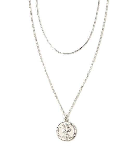 ラフな印象を残したトレンド継続のコインモチーフネックレス。タートルやハイネック、クルーネックに合わせてポイントにするとバランスマッチ。さりげなくも存在感が光るアイテムです。