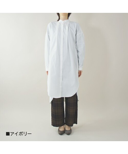 1枚で着るのはもちろん、春には羽織としても使えるシャツワンピース。 サイドに入っている斜めのスリットが他にはない個性的なデザインです。 ハリ感のある素材を使用しているので綺麗なシルエットが仕上がります。 サイズ(cm) 身幅 71 肩幅 61.5 着丈 フロント 96.5 バック 107 袖丈 48