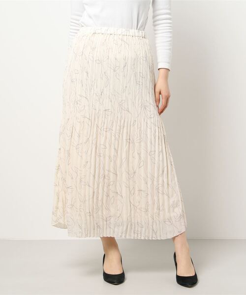 今季注目の線画をプリントした、トレンド感満載のプリーツスカートです。 上側部分のみプリーツをかけ、下側は自然に広がるシルエットなので、腰回りをスッキリと見せ、大人っぽく着こなしていただけます。 ベーシックな色展開なので、細身のトップス・パンプスと合わせてきれいめにも、パーカー・スニーカーと合わせてカジュアルにも着こなせるスタイリングしやすい1着です。