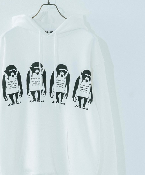 【Ressaca/レサーカ】ユニセックス対応でルームウェアとしてもオススメインパクトのあるプリントで、ベーシックコーデに映えるプルオーバーパーカー。【ファブリック】■ ロングシーズン着回せる裏毛仕様厚手すぎない生地感と柔らかさが魅力で、重ね着してもごわつかない軽い仕上がり。裏毛仕様で素肌に着用しても心地よく、着こなし次第でロングシーズン着回しが可能。【デザイン】■ インパクトのあるプリント全世界で一躍有名となったバンクシーのアート、Laugh Nowをプリントしたアイテム。バックの文字はサルが首からぶら下げているボードに描かれているメッセージで、「今は笑っときなよ、そのうち俺たちの出番がくるぜ。」という内容が書かれています。この作品はバンクシーが無名の時に描いたものだといわれ、社会的地位の低い若者の気持ちを表現しているとされています。■ ザックリとしたサイジング肩幅と身幅に余裕を持たせたシルエットでヌケ感を楽しめるサイジングです。着丈はスッキリしているので、上品な着こなしに仕上げてくれます。【Banksy/バンクシー】バンクシーはロンドンを中心に活動する覆面芸術家。社会風刺的な作品が多く、世界中でゲリラ的にストリートアートを描く。その作風と手法から「芸術テロリスト」と呼ばれ話題になっているが、本名を始めとするプロフィールは未だ明かされていない。2016年日本で公開された映画『バンクシー・ダズ・ニューヨーク』としてもその話題性をにぎわせている今注目のアーティスト。【BRANDALISED/ブランダライズド】世界でもっとも注目を集めているストリートアーティスト・バンクシー(Banksy)のグラフィティ写真を使用したアイテムやブランドコラボレーションを展開する、イギリスのFull Colour Black社による、グラフィティアートプロジェクトです。【コーディネート】ジョガーパンツやキャップと合わせたスポーティなスタイルやワークパンツやシェフパンツにスニーカーといったストリートスタイルは勿論、黒スキニーやデニムパンツとの相性も抜群です。バケットハット、キャップ、ミニショルダーバッグ、バックパック等、様々なアイテムとも◎またセットアップのジャケットにも重ね着できるゆとりを持ち、キレイめにも合わせられます。※画像の商品は光の照射や角度により、実物と色味が異なる場合がございます。生地アップなどの詳細画像が、自然光で見た実物の色味に近くなっております。予めご了承くださいませ。【お買い物をよりお楽しみいただくために】▼商品のお気に入り登録(ハートマークをクリック)完売カラーの再入荷通知や、ラスト1点の通知、セールの通知も受けることができます。▼ブランドのお気に入り登録新商品や再入荷など、いち早くブランドのお得な情報を受け取ることができます。