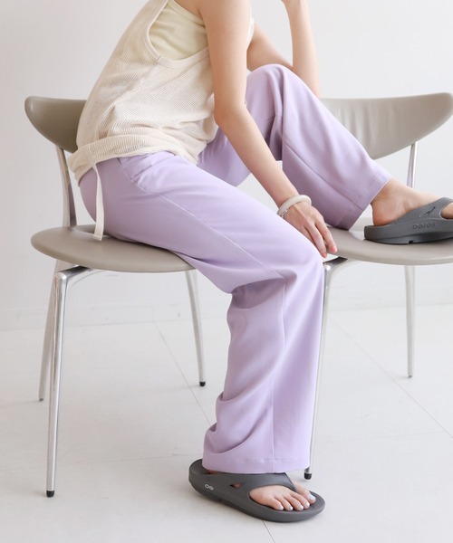 【2021SS】SLOBE citron.太めのセミフレアーのシルエットがこだわりのカラーパンツ。オールシーズン履けるポリエステル素材を採用。テロっとした落ち感のある素材で履き心地抜群◎合わせるだけでぐっと春らしくなるカラーパンツです!*********************透け感:なし裏地:なし伸縮性:ややあり光沢感:なし生地の厚さ:普通**********************【スタッフ着用コメント】《Chika》身長:158cm/普段サイズ:S/着用サイズ:38サイズ感:ウエストはゴムなので窮屈感なく履けます。丈が少し長いので36の方がジャストで履けそうです。素材感:テロっとした落ち感のあるサテン素材。透け感は気になりませんでした。着心地:サラッっとした肌触りで履き心地が良く、季節問わず着られそうです。**********************※取り扱いについては、商品についている品質表示でご確認ください。こちらの商品はWEB限定の商品になります。実店舗でのお取り扱いはございませんのでご注意ください。※店頭及び屋外での撮影画像は、光の当たり具合で色味が違って見える場合があります。商品の色味は、スタジオ撮影の画像をご参照ください。※照明の関係により、実際よりも色味が違って見える場合があります。またパソコン・スマートフォンなどの環境により、若干製品と画像のカラーが異なる場合もございます。予めご了承ください。洗濯:手洗い可ウエストゴム有りです。