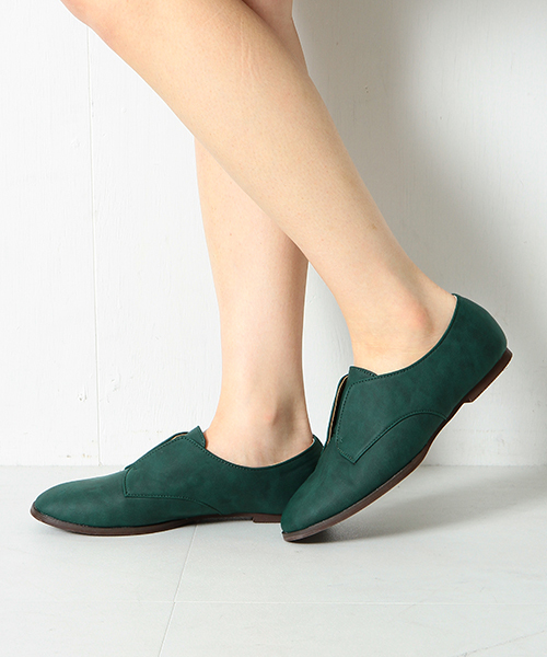 外はねの紐なしマニッシュシューズ。 片手でサッと履けるほど着脱も容易で、内側にゴムを入れた仕様は履き心地も抜群です。 レースアップとは異なるスッキリとした新鮮なデザインが魅力的。 今シーズンのシューズトレンドのひとつであるクロコタイプも含め、旬なカラー展開を揃えました。