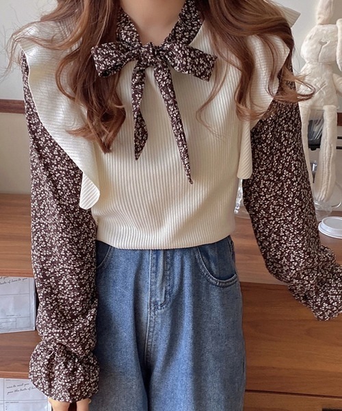 ブラウスとニットベストがレイヤードされた 控えめな小花柄とショルダー部分のフリルがガーリーな雰囲気♡ 伸縮性:あり 厚さ:普通 フィット感:普通 透け感:なし 裏地:なし ※±1~3cmの誤差が出る場合がございます。 【SONYUNARA】 ユニークで可愛いアイテムから、ストリート系アイテムもお得意ないまどき韓国女子のリアルクローズファッション! 「プチプラなのにクオリティも高い」とSNSでも評判♪