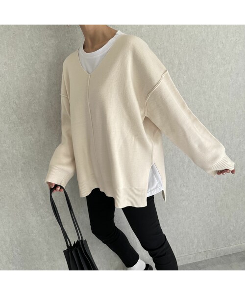 今年らしい深めのVネック&サイドスリット入りでレイヤードスタイル完成するスプリングニットです。 ミラノリブの目の詰まった上質な素材感に加え、アウトシームによるラインの立体感で上品さをプラス! デコルテや顔周りをすっきりと見せてくれるVデザインで、着丈もお尻が隠れる丈感でゆったりと着用していただけるのも嬉しいポイント♪ きれいめからカジュアルスタイルまで幅広くお使いいただけるデイリーアイテムです。