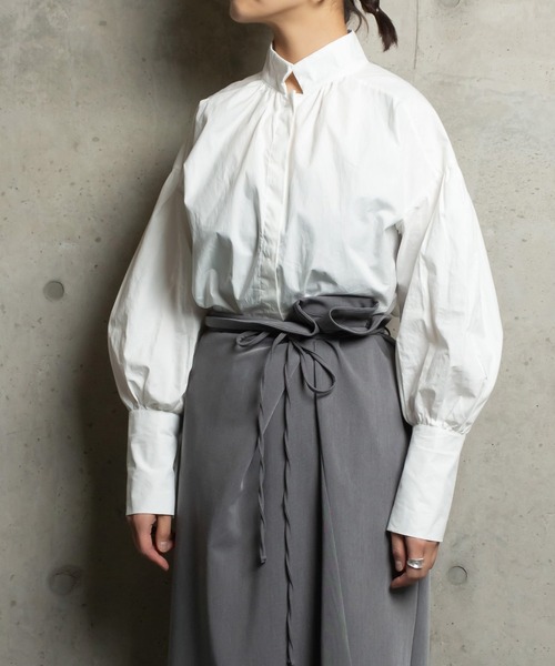 ギャザーボリュームスリーブとロングカフスがトレンドライクなコットンシャツ。お袖にはいったギャザーがボリュームたっぷりでカーブを描いたまるいシルエットとハイネックのスタンドカラーが女性らしさを演出してくれる1枚。しっかりとした高密度のコットンシャツ生地でロングシーズン大活躍するアイテムです。ロングカフスが今季らしいお洒落なデザインでトレーナーやニットの下に着込んでカフスを見せたり七分袖までまくるとよりボリューム感のあるパフスリーブに◎前立ては比翼仕立てになっており洗練されたデザインがオトナな雰囲気漂うレディスタイルを完成させます。デニムやスキニーを合わせた大人カジュアルコーデやスカートやキャミワンピースなどを合わせたフェミニンコーデ、ニットベストやショーパン、ロングブーツを合わせてトレンドコーデなどさまざまなテイストをお楽しみいただけます。ボトムにインするとスタイルアップにきれいめに着こなせるのでおすすめ◎春や秋はトップスとして、夏はキャミソールを合わせてアウターとして、冬はニットベストやニット、トレーナーの下に合わせたりカーディガンを羽織ったりロングシーズン万能なシャツです。【me+em select (ミームセレクト) ZOZOTOWN お買い物ガイド】▼商品をお気に入り登録▼完売商品の再入荷やラスト1点の通知、セール開始時にお知らせ!▼"me+em select (ミームセレクト) "をお気に入りブランドに登録▼新商品や再入荷など、ブランド最新情報をいち早くお知らせ!是非、ご活用いただきお買い物をお楽しみください◎■他のキャンペーンにより、期間中に価格が変動する場合があります。■セールは予告なく終了させていただく場合もあります。■ご覧のモニター環境や撮影環境により実際の商品と多少色味が異なって見える場合がございます。ご理解の程よろしくお願いいたします。